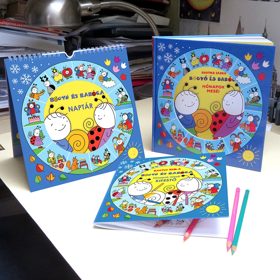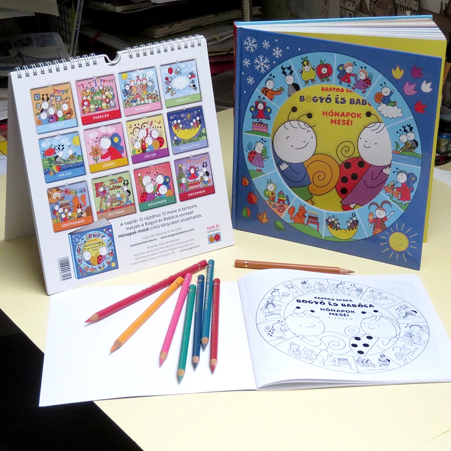 A Bogyó és Babóca - Hónapok meséi című új, nagy mesekönyvben 12 mese szerepel, minden hónapra egy történet, a sorozat szinte minden szereplője szerepet kap. A mesék követik az évszakok, a természet változásait, a hónapok körforgását. A nagyalakú, 240 oldalas könyvhöz kifestő, falinaptár és társasjáték is készült. 23 cm széles, 24 cm magas, 240 oldalas, keménykötéses mesekönyv Szerzői kiadás, 2020